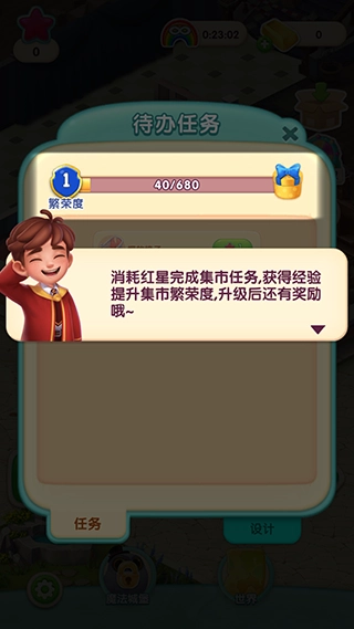 2、在游戏里,主要目标是借助完成关卡来获取红色心心。而消耗红心后,能够完成集市任务,进而得到经验以及提升繁荣度等奖励。