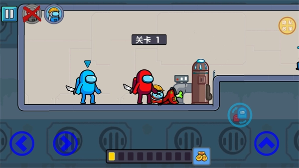 游戏界面的左下角按键用于控制角色的移动方向,右下角的按键则能让角色做出跳跃动作。
