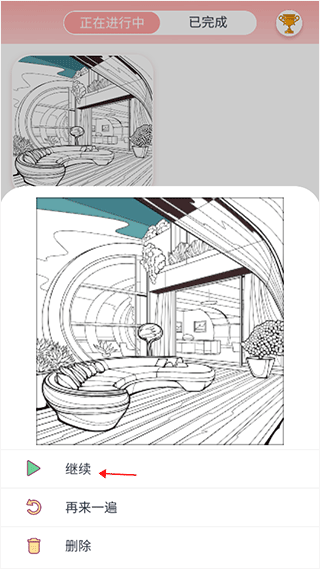 然后选择未完成的那幅画,点击继续就好了