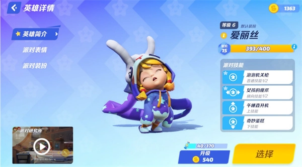 集星之路只需1525星就能解锁可爱的爱丽丝啦,她可是个外形超萌的角色哦。爱丽丝的优势在于攻击距离远,具备抓取技能,板外回场也比较灵活;不过她也有短板,对空能力偏弱,作为萝莉角色回场速度较慢。她的变大机制是把“双刃剑”——单条命拥有2次变大机会,既能提升容错率,又能带来超强的压制力,但体积增大后也会更容易被对手命中。