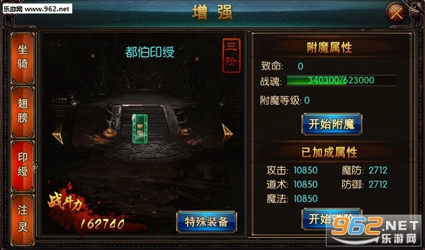 5:印绶升阶会依据玩家的职业,提供攻击、魔法、道术方面的属性加成。