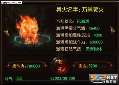 异火激活的三大核心提升中,战力的巨额增长是关键一环——无论是首次觉醒异火,还是后续为异火提升等级,都能带来战力的大幅提升。既然位列三大提升,异火带来的战力增幅自然配得上“巨额”之称:玩家激活首个异火“万兽灵火”即可获得60万战力加成,且异火等级越高,战力增长的幅度也就越大。
