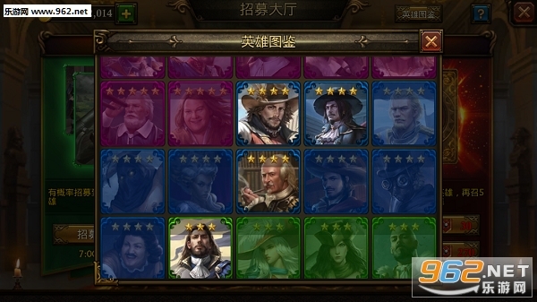 招募大厅内,除了进行英雄招募操作外,点击界面右上角的【英雄图鉴】按钮,就能浏览所有能够召唤的英雄。(把这张图展示出来还真有点难为情,毕竟小编我是个运气不太好的非酋呢~各位英雄,麻烦把灯打开一下,谢谢啦。)