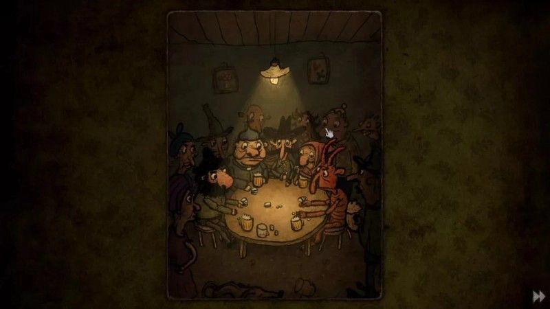 本作的美术风格依旧保持着细腻的质感,解谜机制与前作相近,但在难度设计上做出了更大的调整——游戏里的许多谜题都提供了多元的解法。无论是游戏角色,还是玩家通过点击场景获取的道具,都会以卡牌形态陈列在屏幕底部,玩家需要通过选择角色和道具来推进解谜进程。由于每个角色都有独特的性格与专长,同一个谜题往往能衍生出不同的解决路径。比如在“击败恶龙”的谜题中,玩家既可以遵循传统勇者斗恶龙的叙事逻辑:让孔武有力的猎人大叔挥剑斩杀恶龙,向国王复命后迎娶公主、登上王座成为新君主;也可以接受恶龙的提议,将公主带给它以换取一箱丰厚财宝,最终让恶龙与公主开启幸福生活。游戏中这类趣味十足的小情节不在少数,搭配着轻快的手风琴配乐,玩家足以忘却烦忧,在接连的欢笑中沉浸体验这款别具一格的作品。