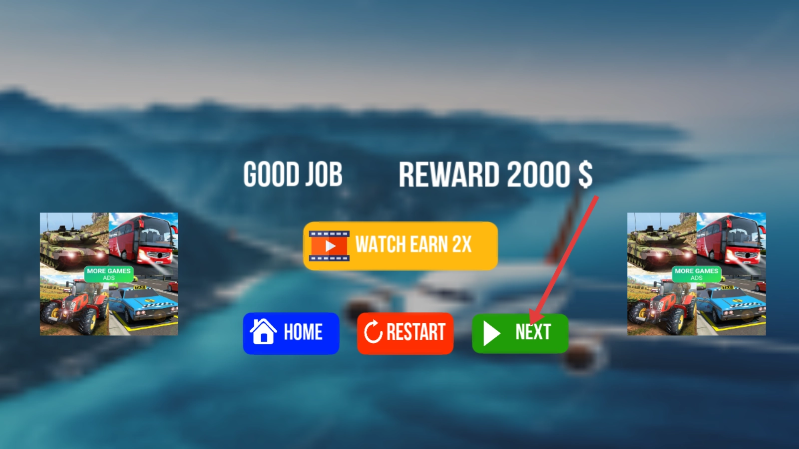 完成任务可获得【REWARD-2000$】,点击【NEXT】即可进入下一关,您也可以选择观看广告来获取双倍奖励。
