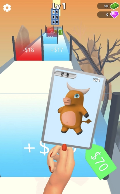 玩家操控角色在变化多样的赛道上奔跑,通过滑动屏幕让角色快速冲刺,在躲避障碍的同时,还得精准收集赛道上的卡牌。