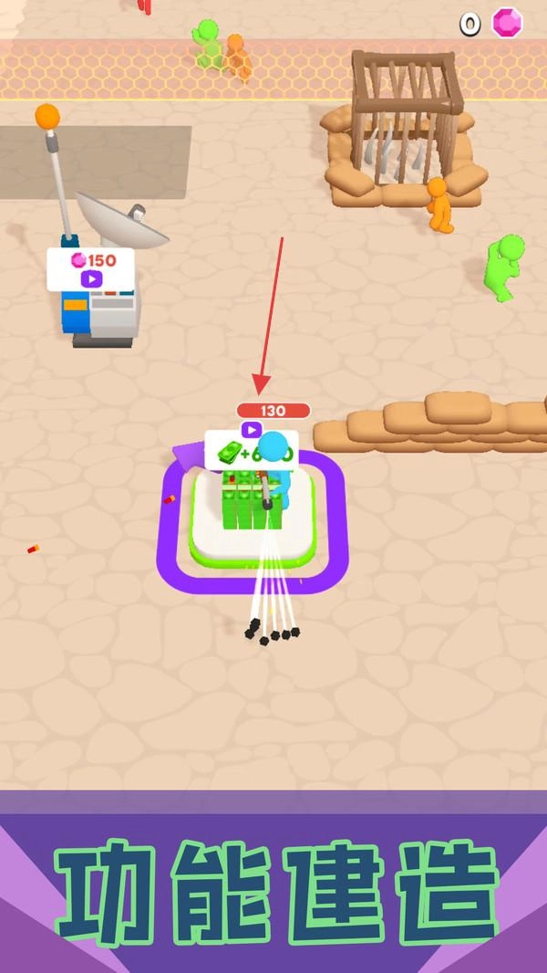 操控彩色小人的兵种,借助无人机、卫星炮这类“科技打击”手段进行远程打击,保卫基地。