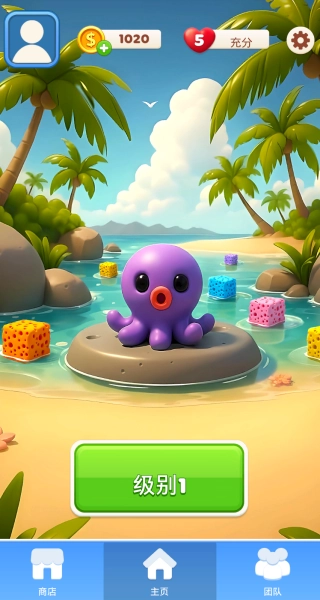 进入游戏后,找到界面上那只可爱的章鱼角色,点击级别1开启第一关挑战,先熟悉基础的操作逻辑。