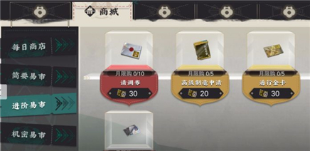 致知只需两个材料中的任意一个就行,一个是对应角色的徽章,另一个是同行金卡。角色徽章可通过招募获取重复角色来得到,金卡则要在易物所的进阶易市中兑换,目前最多只能兑换5张。