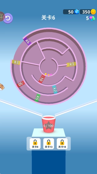通过左右滑动屏幕来操控转盘转动,从而引导更多小球顺利逃出迷宫。