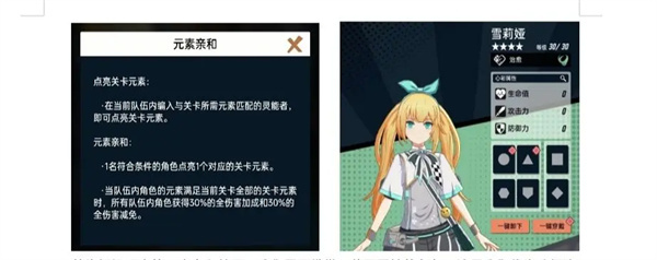 首先根据强大的元素亲和效果,我们需要携带一位风属性的角色,这里我们优先选择治愈职业的雪莉娅。注:别的风c也可以,但队伍最好带一名生存角色