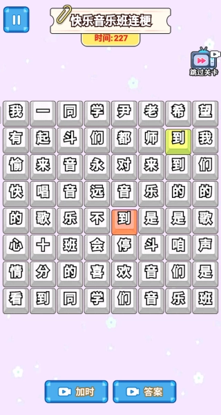 首关通常是主题连梗类任务,像快乐音乐班连梗这种,要求在规定时间里从杂乱的字符中把正确的热梗连接出来。