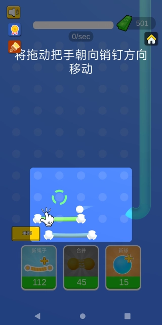 之后玩家能够自主操作,利用消耗积分的方式解锁新绳索,还可以增加小球数量,或者通过合并小球来提高单次弹跳所获得的分数。