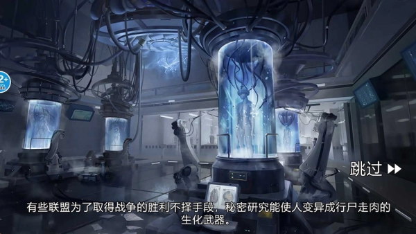 进入游戏后会出现一段较长的背景介绍,点击右侧的跳过按钮就能结束这段开场介绍。