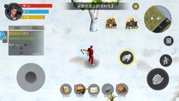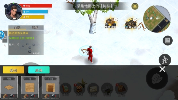 按照画面左侧主线任务的提示行动,先从收集木头开始吧。