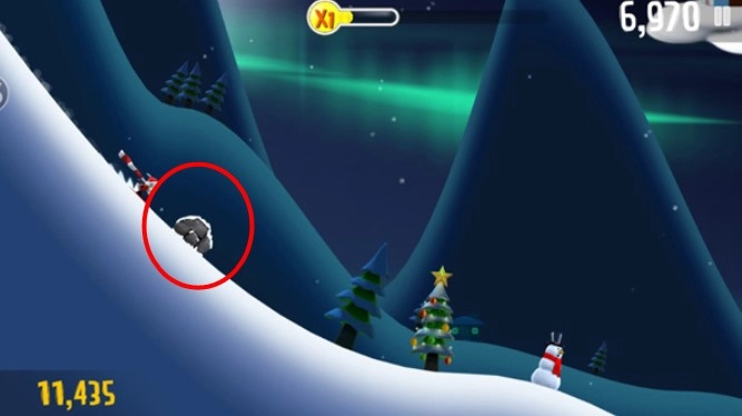 在滑雪大冒险这款游戏里,玩家得巧妙躲开雪地上的各类障碍物,像石头、草丛、冰凌之类的,避免因为摔倒而减慢滑行速度。要是不小心摔倒了,就得赶紧点击屏幕,让角色爬起来接着往前滑。