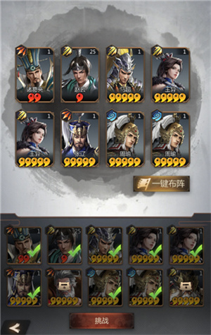 战斗开始前,主公得先安排上阵的武将——最多能选8个,而且允许重复武将出战。主公可以随意组合武将,但要留意他们之间的配合与联动,要是能合理搭配单体输出、群体攻击和控制类的武将,战斗效率会大大提升!等主公熟悉之后,还能使用“一键布阵”的功能来快速安排阵容。