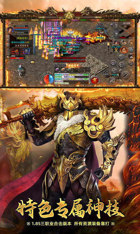 全屏爆装玩法:击败BOSS后装备会直接掉落地面,谁先抢到就归谁,机会难得别错过!