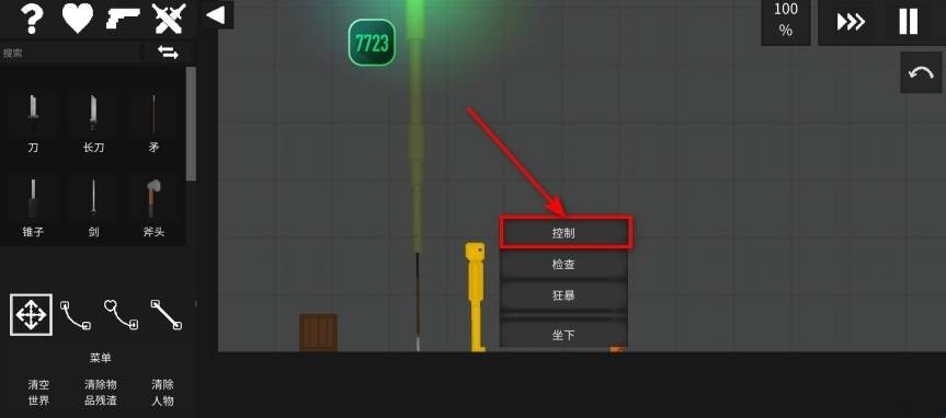 然后点击人物两下,就会出现菜单,我们选择控制。
