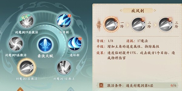 4技能:疾风刺,单体单次伤害,速度临时提高15%(2阶:目标无法触发保护、3阶:技能伤害结果额外提升10%)
