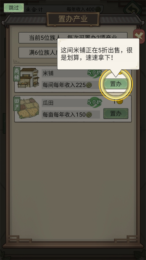 点击置办即可置办自己想要的产业;