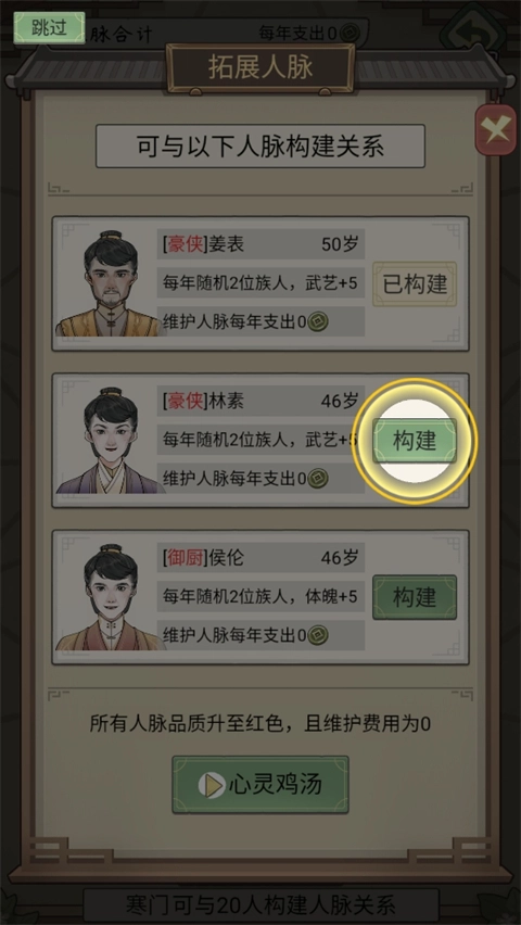 之后点击人脉,即可给家族拓展一些人脉;