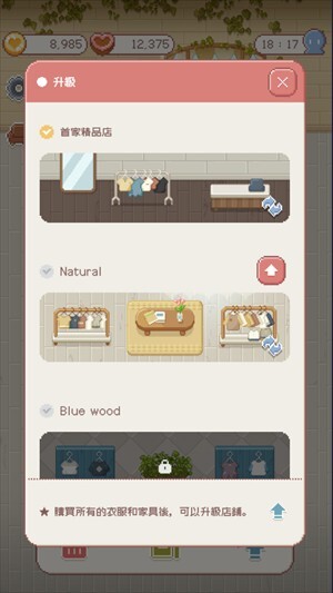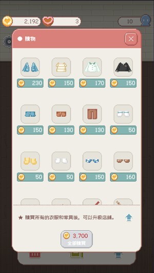 玩家能够消耗已获得的爱心数量,以此提高自己服装店的收益。