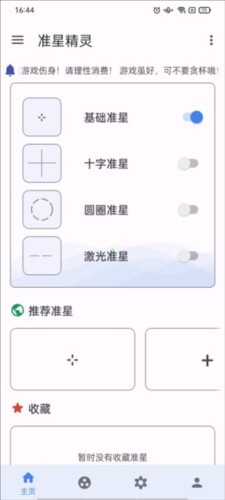 打开准星精灵手机版后,首页会呈现出丰富多样的准星类型,像基础款、十字形、圆圈样式以及激光效果都包含在内。当你挑选好心仪的样式后,只需点击右侧的按钮就能完成启用操作。