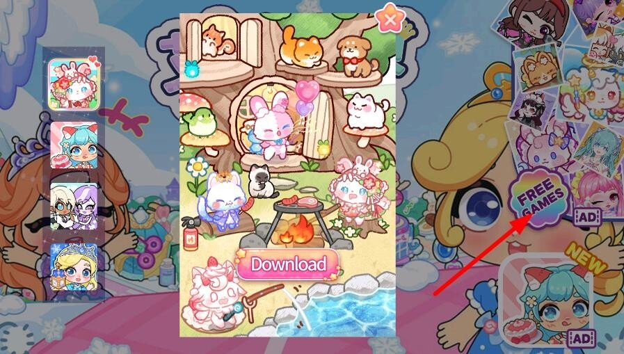 游戏登录页面右侧的【Free games】按钮点击后,还能进入新的场景哦!