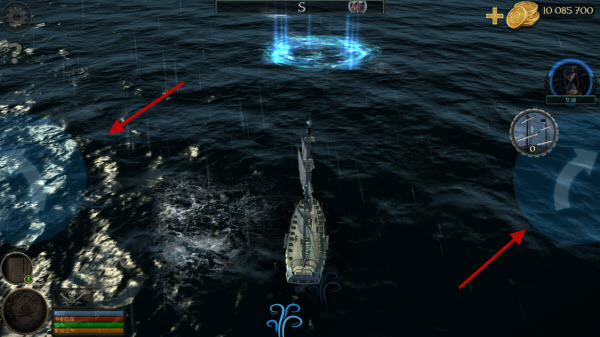 蓝色标记指示风向,将舰船转向以顺风航行。