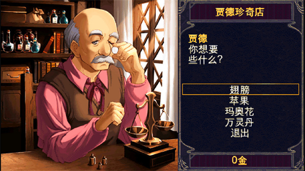 珍奇店就在武器店的旁边,在这里可以买到翅膀、苹果、万灵丹之类的物品。