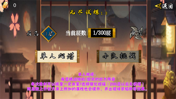 主界面包含多种玩法,像强者挑战、无尽试炼之类,这里我们选择无尽试炼。