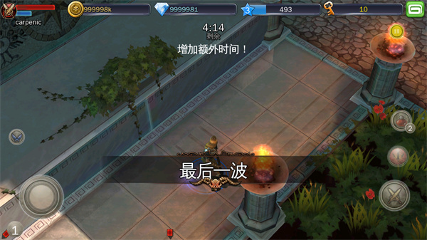 每次消灭敌人都能获取经验值,当生命值不够时,可以利用右上角的回血物品。