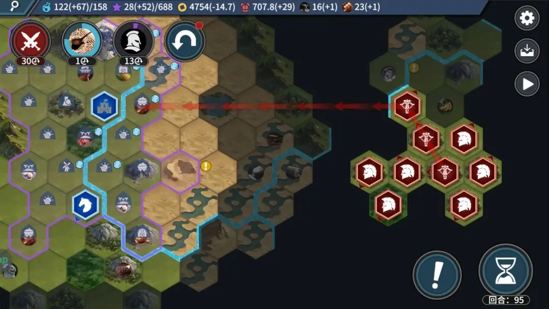 城市扩张:逐步增加城市数量,扩大资源产出,增强文明整体实力。