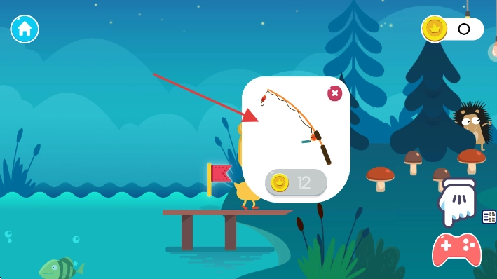 在码头场景的弹窗里,找到那个标价12金币的钓鱼竿图标并点击,花费相应数量的金币把它买下,这样就能解锁钓鱼玩法了。