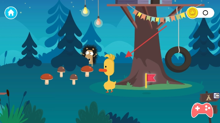 你将化身一只身披明黄羽衣的鸭形伙伴,在被树屋环绕的葱郁林间自在穿梭。途中不妨试着触碰那些圆滚滚的菌菇、蜷成绒球的小刺猬,或是敲敲树屋的木门——每一次互动都可能悄悄解锁新的探索线索,让你离揭开森林深处的秘密又近了一步。