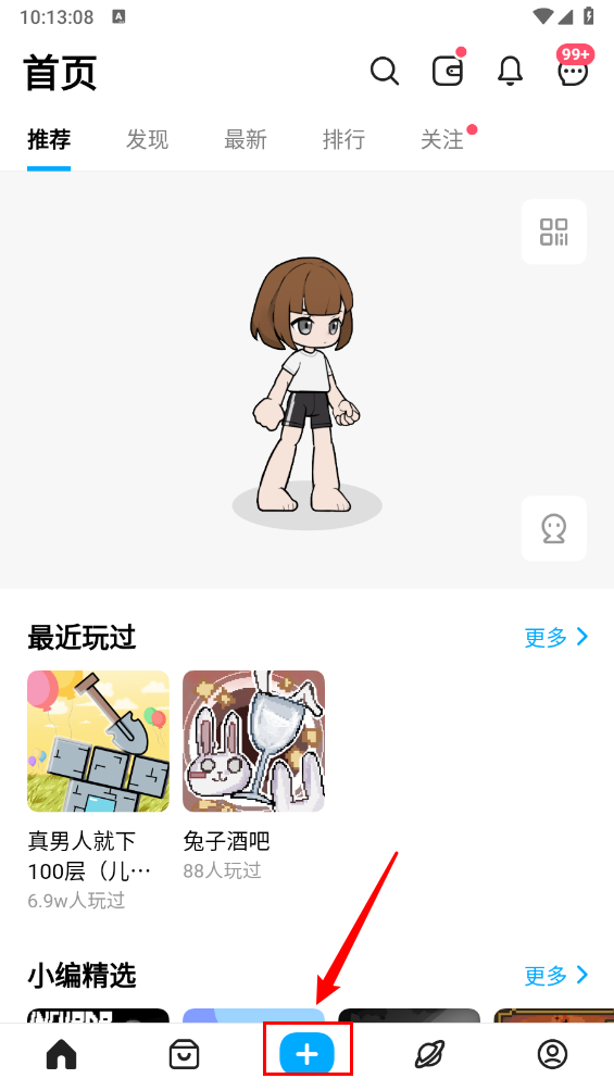首先在安装,进入主页,点击"+"。