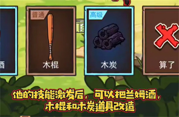 只要成功触发这个技能,短时间内就能对兰姆酒、木棍、木炭这些道具进行改造。