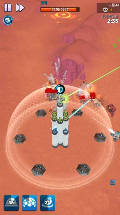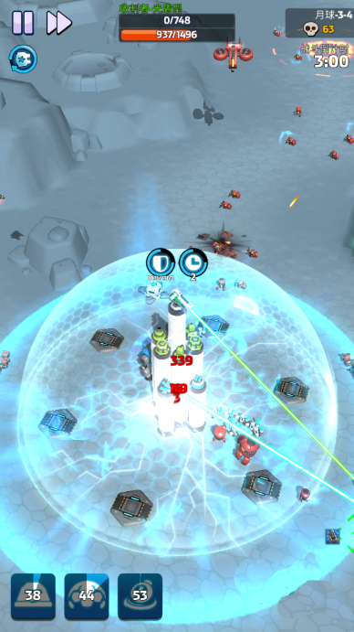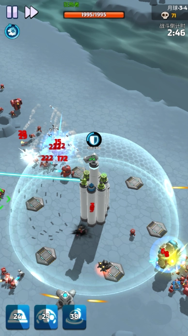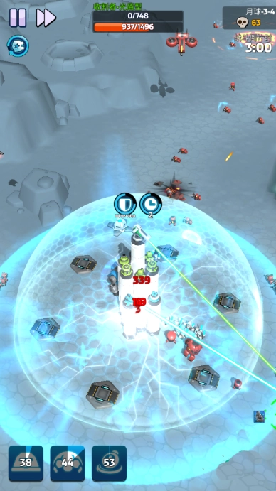 当然,玩家们及时开启防护罩能让其他防御塔免受额外伤害,同时也得在战场上布置各类碉堡参与战斗。尽管敌人数量仍在不断增加,但玩家的防守阵容已部署完成,对方基本无法实现有效突破。不过大家要时刻关注防护罩的能量和技能冷却时间。
