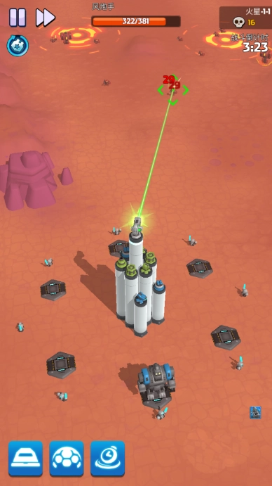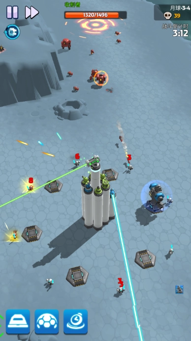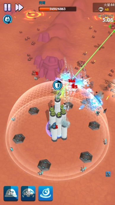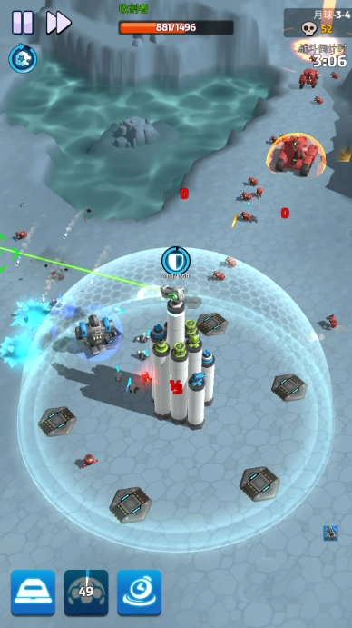 锁定成功后,基地防御塔会展开针对性攻击,此时敌人的防护罩能量将大幅流失,玩家还能召唤多个碉堡协同输出。这一阶段足以摧毁对方的防护罩,之后玩家的攻击便能对敌人造成真实伤害,其他防御塔也会随之加入攻击行列。