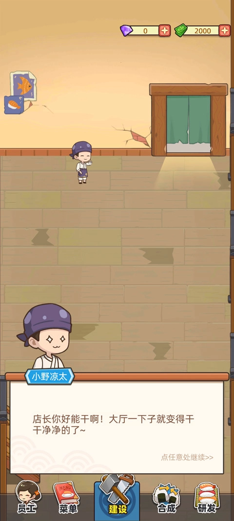 你突然接手了奶奶留下的一家看起来有些破旧的寿司店,得先仔细打扫、装修一番,才能让店铺重新运转起来。