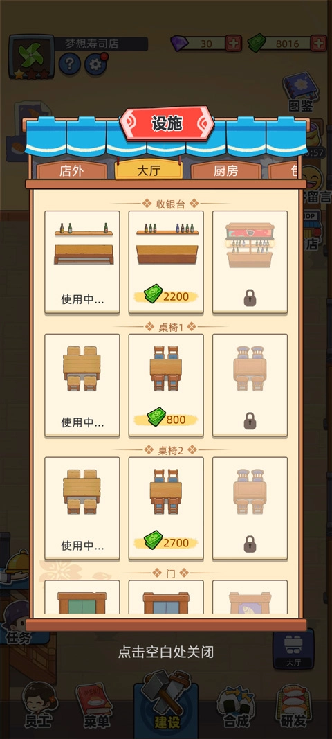 厨房方面,地板千万不要升级(这点务必记住),但切菜区和配菜区是一定要升级的,接下来可以考虑升级洗碗槽和灶台。厨房不需要弄得太高级,只要适度升级来提高出餐速度就可以了。