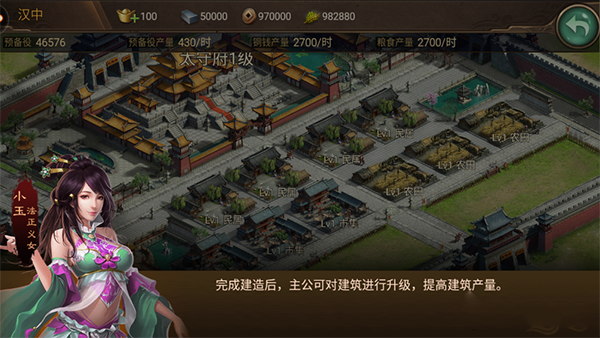 建筑建成后就该考虑升级了,升级建筑能提升产量,这一点很关键。10个一级建筑的总产量还不及一个10级建筑,况且我们的土地资源有限。因此要提高建筑的利用效率,等级自然是越高越好。