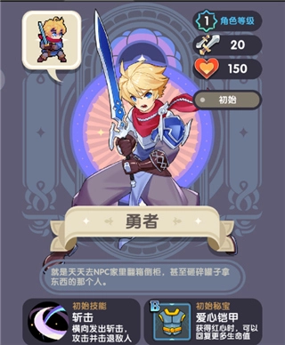 英雄评价:最适合新手的英雄,由于勇者初始技能斩击带有击退效果,能在一定程度上降低走位的要求,让玩家拥有更多操作空间,在面对BOSS战时也能有效避免BOSS突脸带来的高额伤害。
