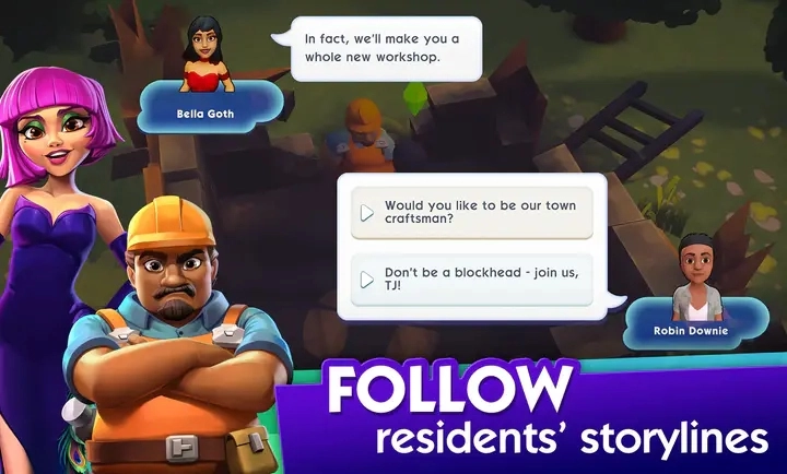 选择你的模拟市民:在他们探索城镇、建立人际关系的过程中,指引他们的人生旅程