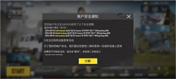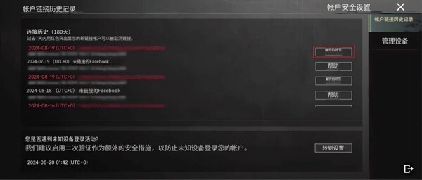 当非常用的授权装置或帐号处于不安全环境时,将无法执行对其他平台的解除绑定或更换绑定操作。