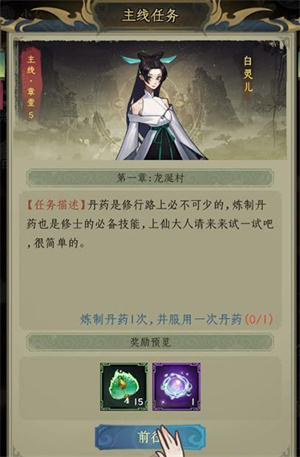 玩家能够尝试挑战主线任务,完成之后就能获取丹药之类的奖励。