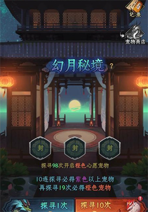 还可以到幻月秘境进行探寻。
