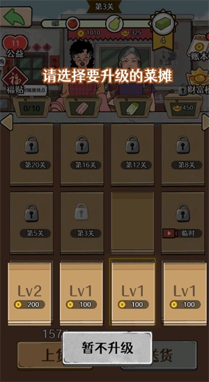 可以用卖货赚来的钱升级小摊,这样摊子后续能赚的钱就会更多了。