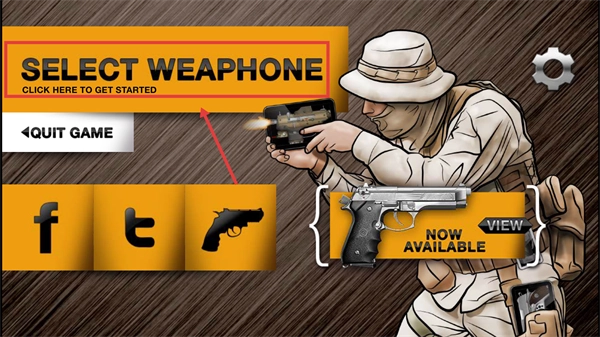 进入游戏后,点击【SELECTWEAPHONE】按钮选择枪械,能查看各类武器的型号和特点,进而开启模拟射击体验。